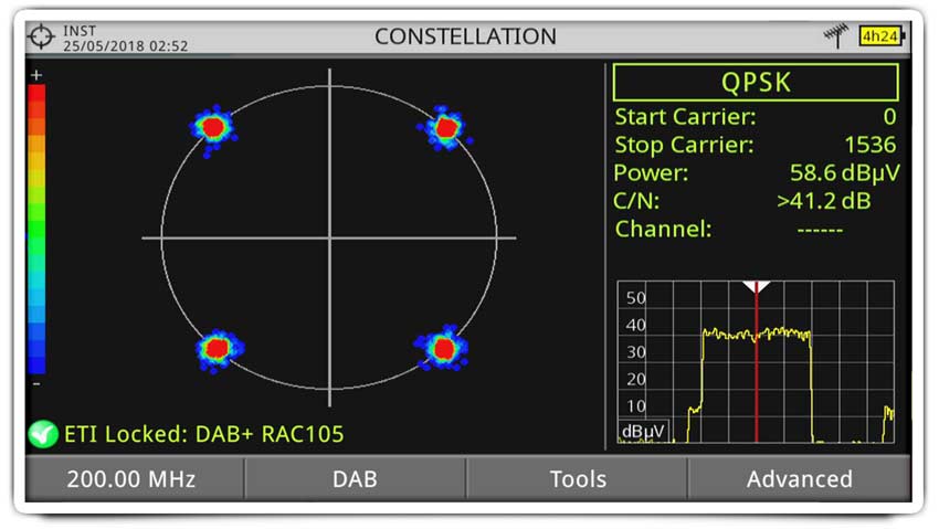 The new Advanced DAB option for RANGER Neo spectrum analyzers allows professional users to do DAB signal quality measurements and it includes many functions which are normally available in higher cost products only such as ETI recording, constellation diagram or echoes analysis.