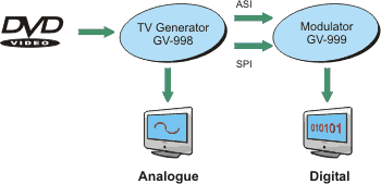 The input signal can be accepted in either ASI series or SPI parallel format. Using the GV-998 generator, it makes a complete and independent testing set denominated GV-999.